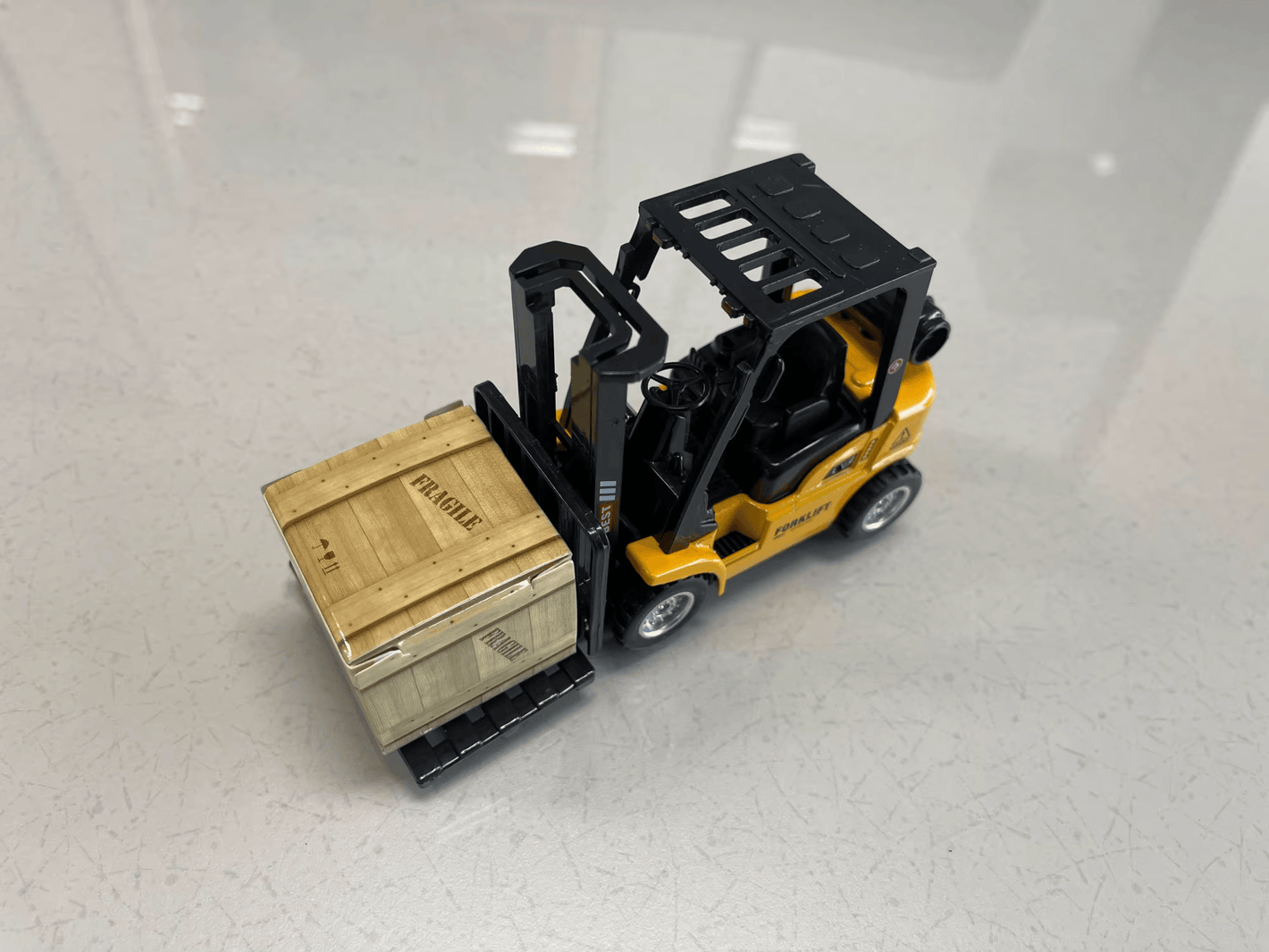 Soy operador de montacargas y un gran aficionado a este equipo. Me encanta este modelo por lo realista que es. Su peso lo coloca por encima de un simple juguete. Otra característica encantadora es la posibilidad de ajustar las horquillas, subir y bajar el mástil e inclinarlo hacia adelante y hacia atrás. Compré un pequeño modelo de tanque de propano y lo pegué detrás del asiento para completar la apariencia realista. En definitiva, ¡recomiendo ampliamente este pequeño camión!